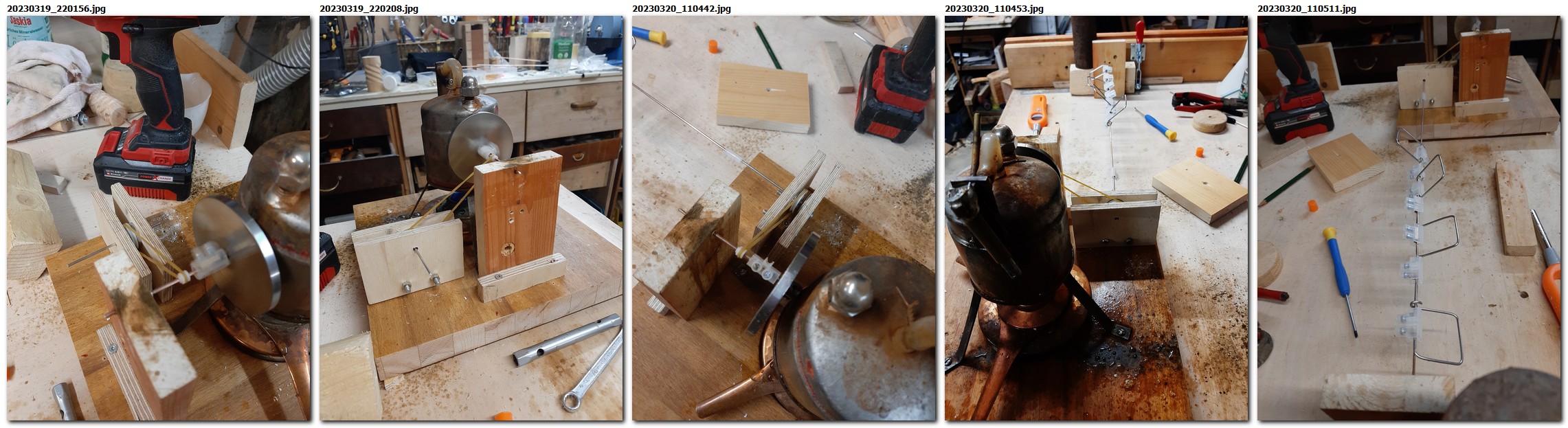 Es ist faszinierend, dass der kleine "Dreibeiner", der im Technologieuntericht in der 10. Klasse in Remscheid entstanden ist läuft. Und dann die Tatsache, dass sich etwas bewegt und in Bewegung bleibt, solange, bis ich die Flamme wegnehme und die Maschine "ausschalte", heiß ist sie trotzdem noch. Ein Leerlauf ist aber im Grunde langweilig. Das Kesselvolumen von etwa 0,2l lässt vermuten, dass ich etwas direkt ankoppeln kann und dass so eine eine zweite Bewegung entsteht, dass ein “Nocken” etwa einen Hammer antreiben kann. Über eine Transmission lässt sich dann die Antriebskraft verteilen. So können modellhaft andere Geräte angetrieben werden. Drehbewegungen lassen sich in ausgeklügelten Getrieben komplett umlenken. Über einen Dynamo könnte ich dann noch Strom erzeugen, eine "neue" Energie oder Kraft, die dann wiederum etwas Neues in Bewegung bringen würde. Streng genommen wäre jetzt noch der Generator und die Lampe dran: das elektrische Licht. Bis zur Solarzelle ist es nicht weit, die wiederum ein Motörchen mit Energie versorgt, das etwas in Bewegung setzen könnte. Das Ganze ist faszinierend, man könnte ja auch noch leistungsfähigere Dampfmaschinen bauen, etwa um ein größeres Boot anzutreiben.