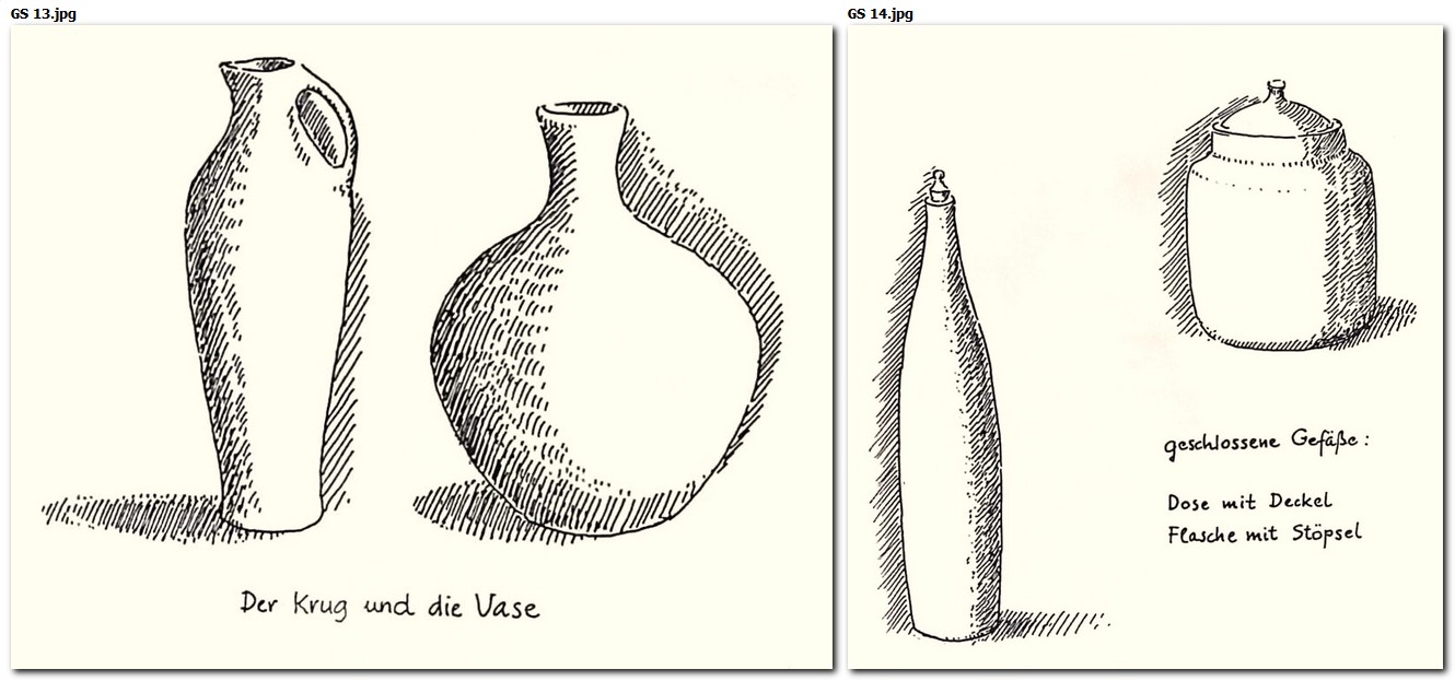 Aller Umgang mit den Dingen des täglichen Gebrauchs sollte mitbestimmt sein von dem Gefühl der Achtung vor dem, was gleichzeitig Bild sein kann und Bild sein sollte einer höheren, den Menschen betreffenden Wirklichkeit. So entspricht es dem Lebensalter, in dem der Jugendliche sich befindet, dass sein Körper einen Prozess der Festigung durchmacht. Seine leibliche Hülle hat einen gewissen Abschluss ihrer Entwicklung erreicht; sie schließt ein neues Seelenleben ein. Dieses ist nicht nur vorübergehender Durchgang von Erlebtem, Gelerntem und Erfahrenem - ein bleibender Innenraum wird gebildet. Das gilt auch für noch größere Zusammenhänge: Arbeiten Menschen in rechter Weise zusammen, dann bilden sie geistig gesehen ein Gefäß, in dem ihr gemeinsames Bemühen sich sammelt. Und in alten Zeiten hat das liebevoll gestaltete Gefäß als Grabbeigabe die Seele des Menschen in das jenseitige Leben begleitet.