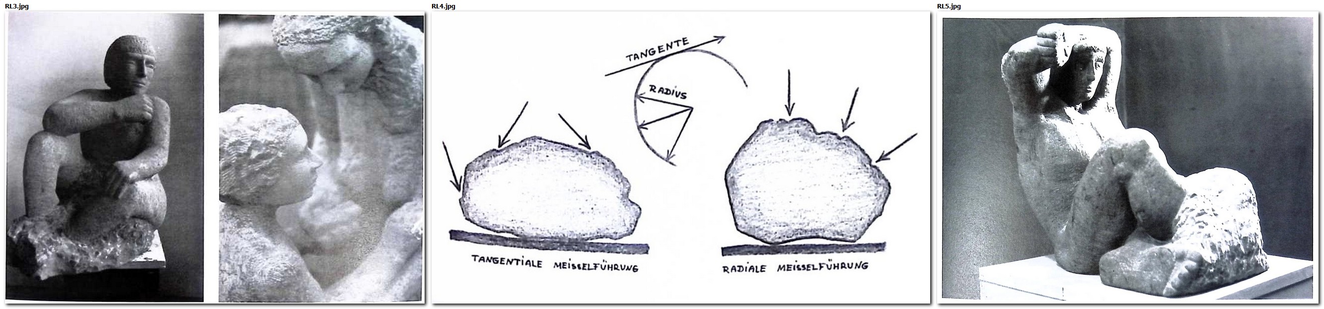 Bei der Arbeit mit tangentialer Meißelführung besteht die Gefahr, dass Verbesserungen schwerer möglich sind, weil die Einzelformen schneller und entschiedener in Erscheinung treten, bei radialer Meißelführung aber kann sich der Schüler in der Aufgabe zeitlich wie formal verlieren.