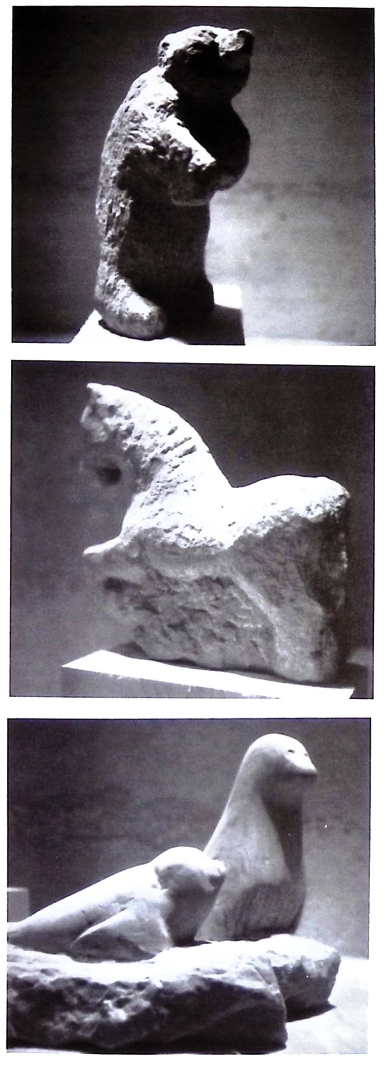 In einer völlig neuen, ganz auf den Stein bezogenen Weise geht der Schüler diese Aufgabe an. In der 9. Klasse hat er Tiergestalten aus Ton plastiziert, wobei er die typischen Wesensmerkmale des jeweiligen Tieres herausarbeiten sollte. Jetzt wäre dem Zehntklässler dieses Plastizieren nicht mehr entsprechend. Über den Umweg «Stein» bekommt er ein völlig neues Verhältnis zu dieser Aufgabe. Er begeistert sich an der sich langsam aus dem Stein herausschälenden Tiergestalt und vermag durch diese Begeisterung das Material zu beleben. Die Tierformen steigen wie erlöst aus dem Werkstoff herauf, sie lassen alle Schwere hinter sich und treten wie «verwundert» ans Tageslicht. Die Unmittelbarkeit der äußeren Erscheinung «gelingt» einerseits durch die in dieser Altersstufe noch mangelnde Möglichkeit, eine Tierform anatomisch richtig zu sehen und wiederzugeben, und andererseits durch die liebevolle Hingabe des Schülers an die jetzt geübte neuartige Tätigkeit. So führt die zunächst rein handwerkliche Betätigung in eine neue künstlerische Auseinandersetzung hinein.