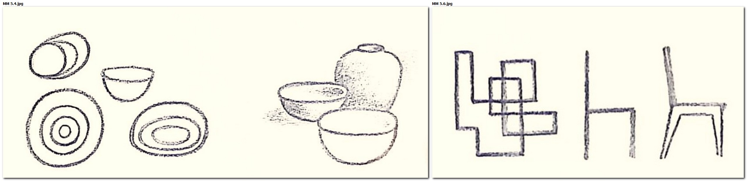 Diese Methode regt R. Steiner in den «Lehrplanvorträgen» für den zeichnerischen Unterricht an, erweitert sie aber sofort auch auf das Malerische und Bildnerische.[2] «Aus der Form heraus» sollen alle nur denkbaren Formelemente geübt werden, damit das Kind ein unmittelbares Erlebnis von runden, hohlen, spitzen, geraden, eckigen usw. Formen in sich entwickeln kann. Denn runde Formen wirken anders als spitzige, sie entstehen aus anderen Formkräften als jene. Das soll das Kind empfinden lernen, bevor es dieselben Gestaltungen in der äußeren Welt wiederfindet. Zuerst soll es einen Winkel zeichnen, danach mache man das Kind darauf aufmerksam, dass an dem Stuhl ein solcher Winkel zu finden ist. «Lassen Sie das Kind nichts nachahmen, bevor Sie nicht in ihm aus innerem Gefühl heraus die Form in ihrer Selbständigkeit gepflegt haben, die dann später erst auch nachgeahmt werden kann...»[3]