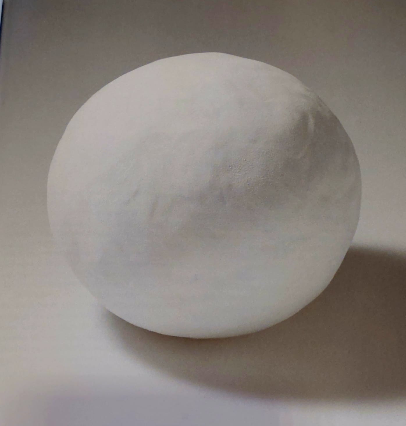 Es gilt die Kugel oben und unten nur so weit abzuflachen, dass noch eine gewisse Wölbung erhalten bleibt. Dabei orientieren wir uns an der gedachten horizontalen Mittelebene, «m eine ausgewogene, symmetrische Form zu erhalten - eine plastische Oben-Unten-Spiegelungsform.