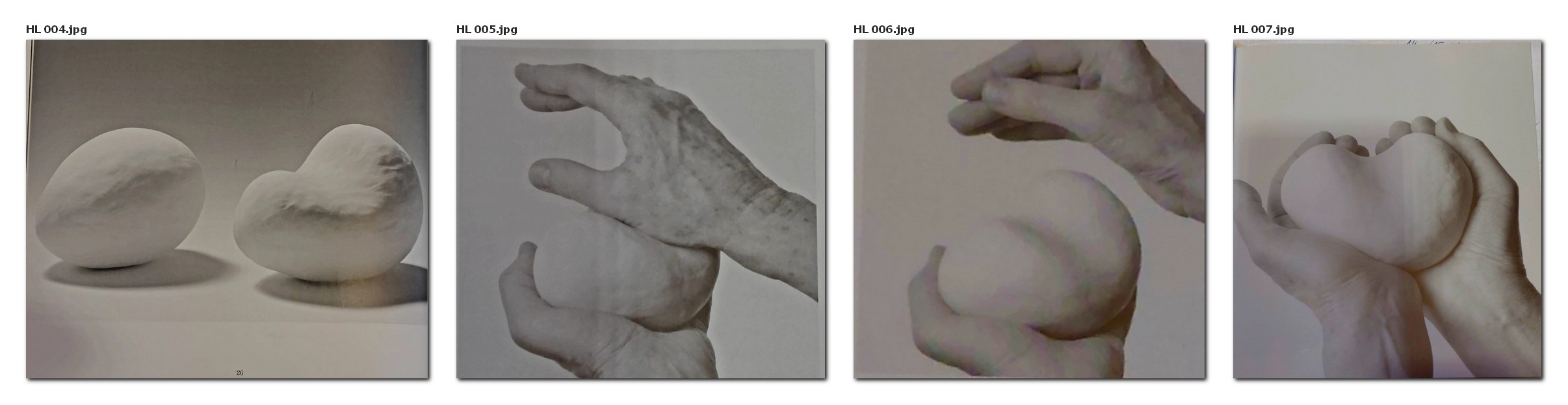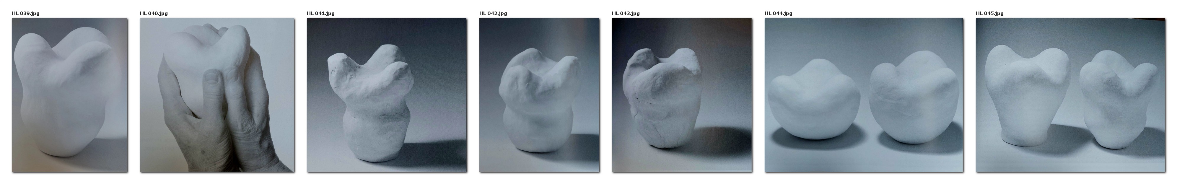 Gegen Ende des Formprozesses lasse ich die Fläche der Form besonders fein bearbeitet wird. Auf Kinder die Form auch einmal umgekehrt auf eine diese Weise werden die Kinder im Laufe der Zeit Hand legen, also den oberen, gegliederten Teil unten in die Handfläche. Dann können sie mit der anderen Hand fühlen, dass die untere Hälfte der Form die Rundung beibehalten hat und dass die Formveränderung bisher nur in der oberen Hälfte erfolgt ist.