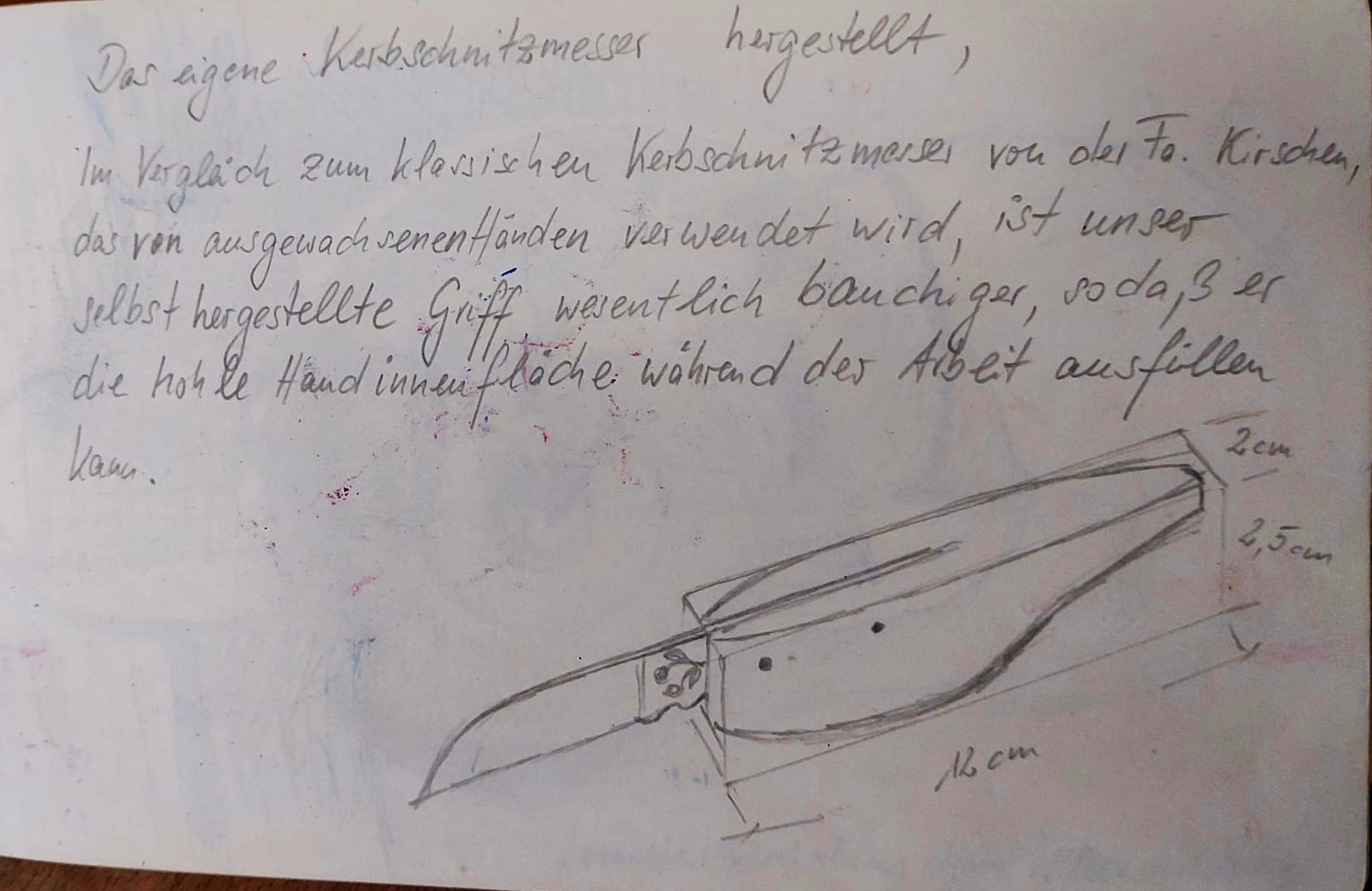 In der 4 das eigene Schnitzmesser machen; die Arbeit muss schön werden. Die Welt ist schön! Handwerkskunst.