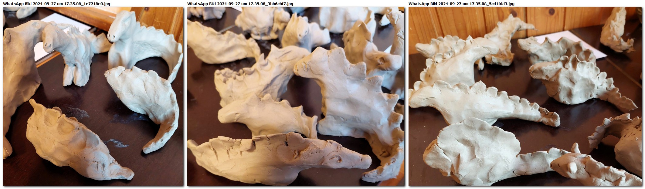 Eine schöne Arbeit in der Michaelizeit oder am Tag des Michaelifestes: sehr schön die Ausgestaltung, dazu Dracheneier und Babydrachen. Wenn der Ton getrocknet ist, kann man sie gut nach draußen in den Wald in eine vorbereitete Drachenhöhle bringen. Natürlich wird sich der Ton in der feuchten Witterung auflösen und zerfallen. Die Vergänglichkeit von Materie ist durchaus ein Prozess, mit dem die Kinder permanent leben, alles ist ein Kommen und Gehen, der Jahreslauf und die Jahresfeste sind da eine gute Moment innezuhalten, sich bewusst zu werden.