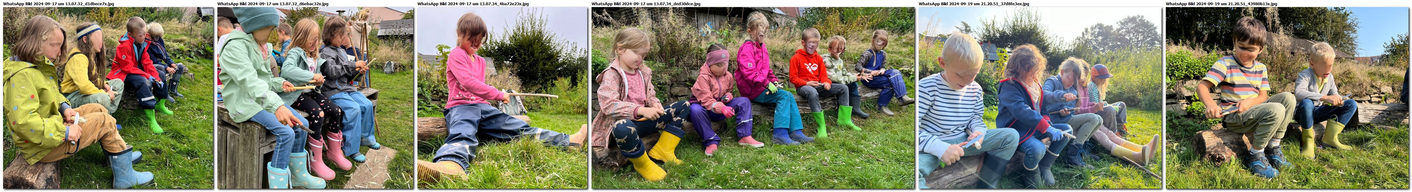 Beim Schnitzen wird es offensichtlich, wann die Aufmerksamkeit nachlässt. Dann, nein besser vorher, ist es Zeit aufzuhören. Dann sollten die Messer auf jeden Fall eingesammelt werden. In der Gruppe zu schnitzen ist schon eine besondere Herausforderung, zumal, wenn Handhabung des Messers und die Regeln bei der Benutzung nicht eindeutig geklärt sind. Mitunter sind Kinder in einer zweiten Klasse noch nicht so weit, dass sie eine solche arbeitsteilige Aufgabe erfüllen können. Da reicht es dann vielleicht, einen Stock anzuschnitzen, um daran ein Stockbrot zu backen.