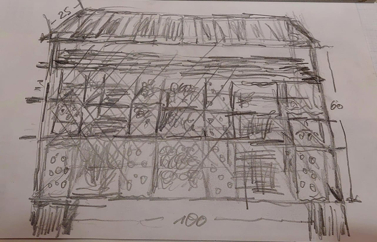 | Seitenwand als Leiter mit 3 Sprossen | 12 Lehmziegel als Trennwände aufstellen | Naturmaterial | Lehm | Naturmaterial | Lehm | Naturmaterial | Lehm | Seitenwand als Leiter mit 3 Sprossen |